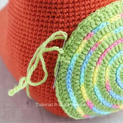As with all of our other amigurumi patterns, you will need to crochet the body parts separately first. Start with the body using orange yarns. Follow with the belly using green yarn (in rounds), and then crochet a spiral line using rainbow-colored yarn. Next comes the wild-looking pair of ears, the big round snout, the cute rainbow spikes, and the strong dragon wings. Finally, crochet the three-fingered arms and tiny feet! This may look like a lot of work, but trust me, you’ll be happy when they are done.
