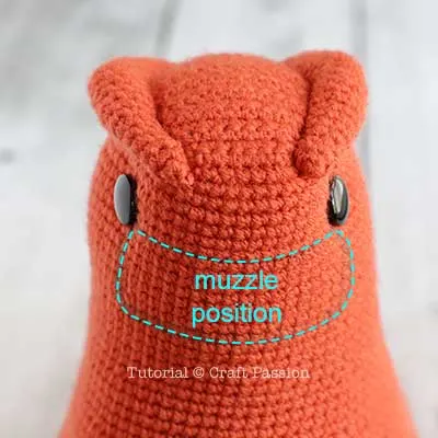 - Mark the position of the snout on the head with a marker and sew accordingly