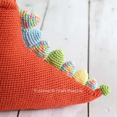 Oh! Remember to sew a small spike at the tip of Dinogon’s tail for a complete outlook. We used vibrant colors to create a contrast between the Amigurumi Dragon’s body and body parts, so he looks more magical. However, if you want a more adult-looking crochet dragon, you could opt to standardize the spikes and tummy to just a single color!