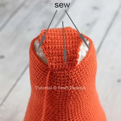 - Position the ears on the head, align them at the seams of the flap, sew around.