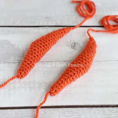 Make 2 with Orange yarn. This pattern is made by joining 3 finger pieces together.