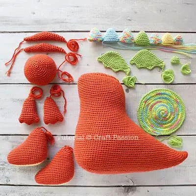 Crochet parts: Body, Tummy, Ears, Snout, Spikes, Wings, Arms and Legs