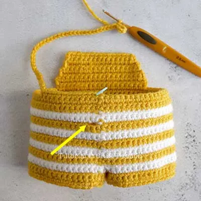 With Yellow yarn, continue to crochet from the pants [refer to pic 5].