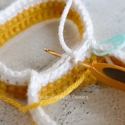 With Yellow yarn, continue to crochet from the pants [refer to pic 5].