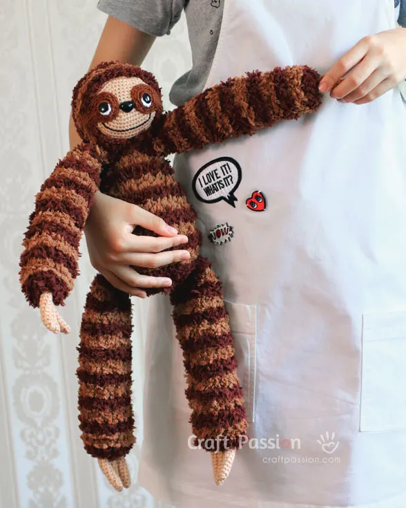 Sill, the baby sloth amigurumi is crochet from acrylic and fuzzy yarn. Please don’t get shy away by the fuzzy yarn crochet, it is not difficult or messy to find the correct stitch to pick and crochet. I have made a 23 minutes video to highlight you the flow on how to crochet this sloth amigurumi.