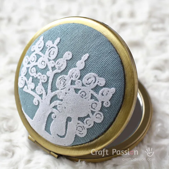 For a more intricate design, you may cross stitch a small pattern for the pocket mirror. If your favorite cross stitch pattern is too big for the pocket mirror, use higher thread count of Aida fabric to scale down the size so that they fit into 2 1/2″ diameter. My sister cross-stitches them for me and I really like them a lot.
