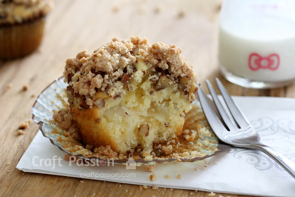 This Apple Crumble Muffins recipe was modified from an old recipe I found in my recipe book collection. It is very easy to bake and yummy delicious to eat as dessert. Love the moist apple in the muffins, plus the hint of cinnamon and the chunky nutty pecans… oh… I want some more!!!