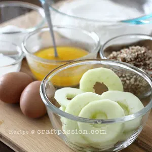 The apple slices in ring form should be smaller than the hole of the muffin pan. If they are too big, trim the apple ring edges a little.