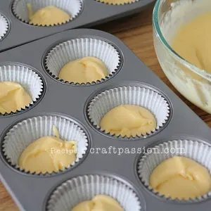 - Pre-heat oven to 180°C (350°F), top & bottom heat. Place cupcake liners into muffin pans.