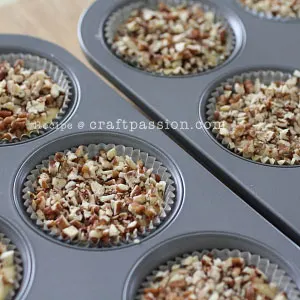 This recipe for the apple crumble cake in muffin form is divided into two components: the crumbly topping (crumble) and the apple mixture in muffin cake. For those of you who enjoy a crunchier texture, you can add oats to this apple crumble recipe to turn it into a crisp or you can simply increase the amount of pecans.
