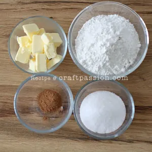 - Prepare the crumble topping by combining the Strudel ingredients. The butter has to be cold and cut into smaller cubes.