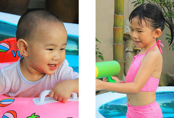 And, before the party began, they got all wet in a small temporary swimming pool we set-up for them in our garden.