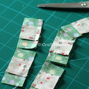 Repeat until you get all the 3 strips of 3 groups sewn together.