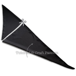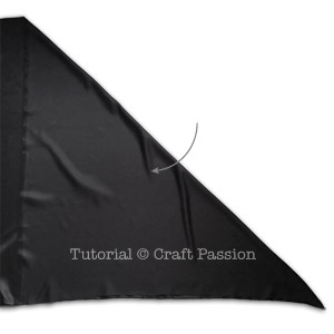 - Cut the fabric across horizontally to get a folded triangle in full width of the fabric, around 42″ depending on the bolt width of the fabric that you have bought.