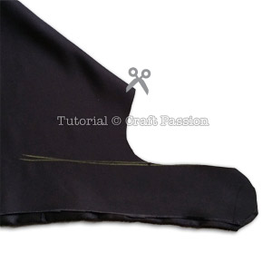 c. Cut 1/4″ away from the sewing line with a pinking shear. If you don’t have pinking shear, cut with normal scissors and clip curve. Leave a wider seam allowance at the opening site.