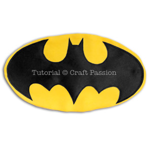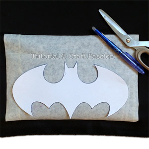- a. Trace the printed Batman logo (resize before printing according to the cape size if needed) on the wrong side of the yellow fabric, about 1/2″ from the edge.