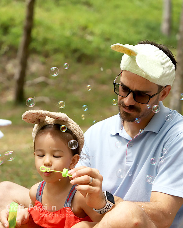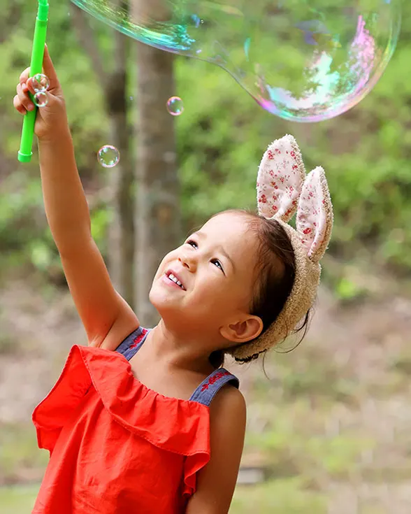 We spent quality time in the garden with Hanna and her wonderful family over the weekend. Just look at her chasing around the bubbles gleefully with the floppy bunny ears. Ecstatic with the thought of dressing up and playing around, she and her brother had so much fun hopping around like bunnies.