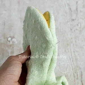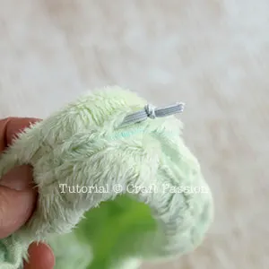 Fold the bottom edge into the ear and sew to close the opening. You may hand-stitch with slip stitches to close the gap if the pile is too thick to go through your sewing machine.