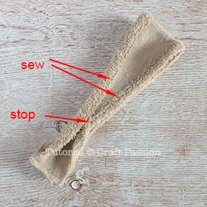 After cutting out the headband piece, mark the sewing lines, as shown in the picture.