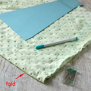 Fold the pile fabric with the right-side facing each other, align the template with the broadest width (marked as centreline in the template) at the folded edge.