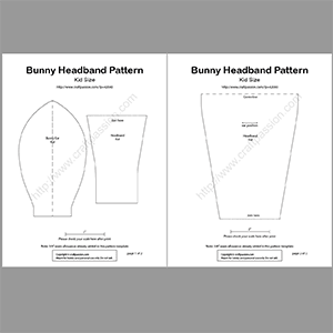 - Download then print out the bunny headband for KID SIZE & ADULT SIZE separately. Do not scale the printing. If you are not sure if the printing is in full size, check it with a ruler by measuring the 2" length shown in the pattern.