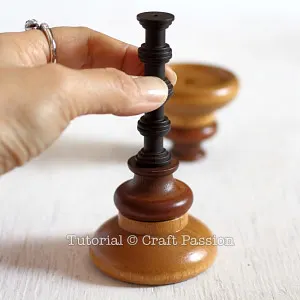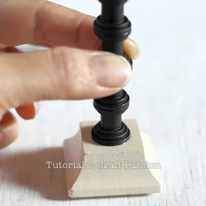 Next, glue the round knobs to the top of the stand.