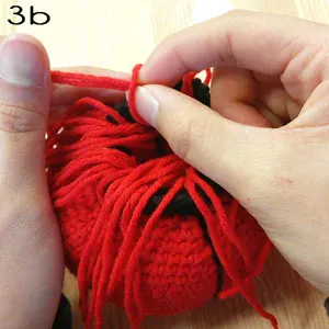 Cut red yarns into 20cm strips, fold into half and tie it to the bottom of the lantern (refer to pic 3a, 3b)