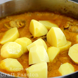 - Add coconut milk & potatoes, and simmer until chicken is tender and potatoes are soft. (Picture 9, 10)