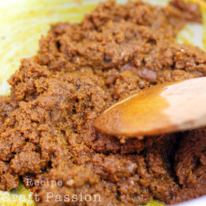 - Grind ingredient B into a paste. Mix with curry powder to turn the mixture into curry paste. (Picture 2, 3)