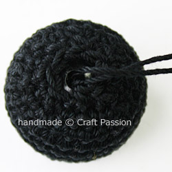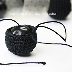 Follow the pattern and crochet with snugly tight tension. Tuck in the bead into the crochet shell when it says “insert bead”.