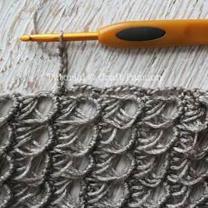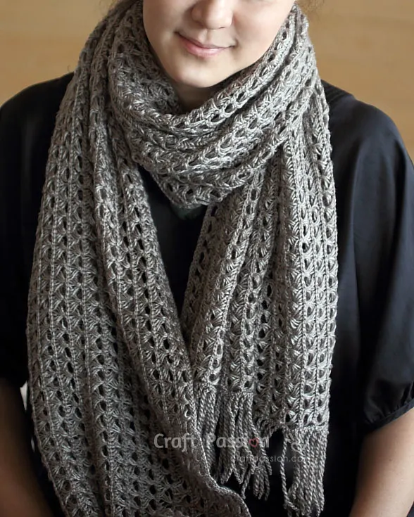 Get the full article at https://www.craftpassion.com/crochet-broomstick-lace-scarf/