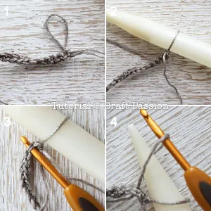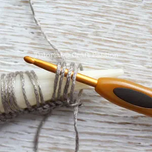- Crochet Row 1 and Row 2 by following the crochet pattern above to make a long chain and single crochet base before starting the broomstick lace stitch.