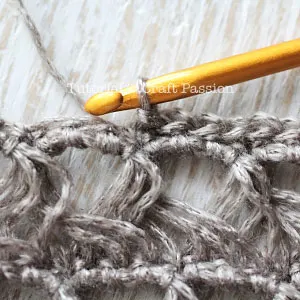 Repeat row 3 and 4 until you reach the height of about 20″. I repeated row 3 and 4 25 times.