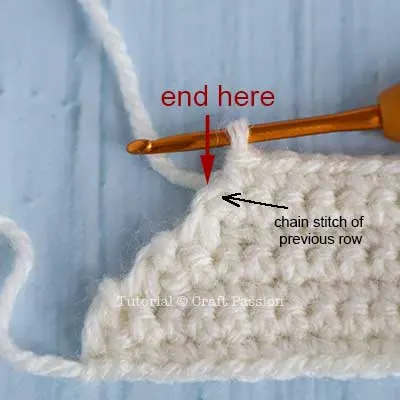 Make a short strip with 3 chain stitches, fasten and standby to be joined at Row 5.
