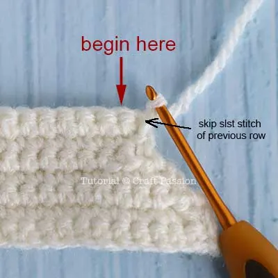 Row 7 - 31: ch (count as a st), sk 1 st (slst st of previous row), sc 26, slst (into ch st of previous row), turn. {28}