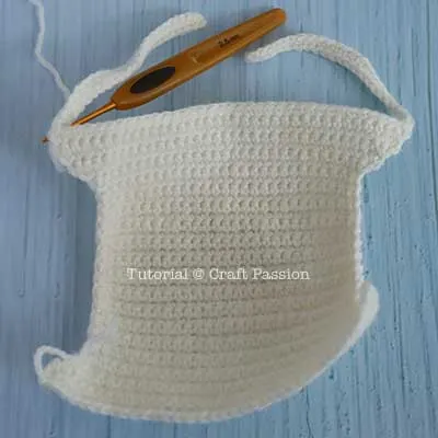 Don't fasten, continue to crochet the skirt part as below.