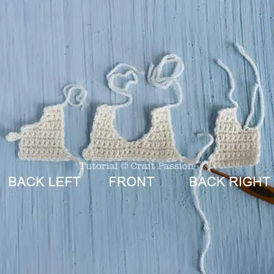 As for the bottom piece, the Blue panties is crochet by alternating the yarn color every 2 rows. Begin with 1 row of blue, then 2 rows of white, and alternate between the colors. Then finish off with blue trim.