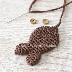 Complete the crochet fish pendant by sewing the buttons on both sides as eyes.