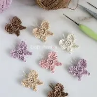 Make crochet leaves and butterflies along with this easy flower applique. A fun way to utilize these designs would be to make a card for mommies for the upcoming mother’s day or a greeting card for any occasion. Also, instead of clothespins & hair clips, what about making them for hair bands, earrings, necklace pendants, and rings? Not to mention the flower brooch, there are so many ways to use it, and new ideas are regularly popping up in my mind.