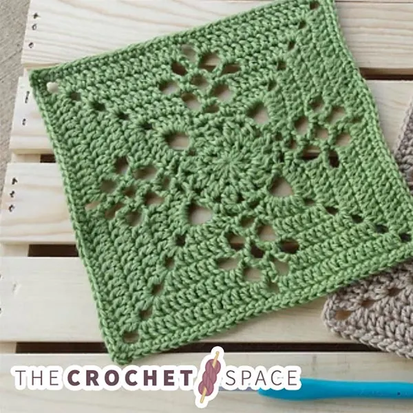 Here’s a more complex square design that combines some simple stitches, front and back posts stitches, and the playful popcorn stitch! It might be a challenging pattern for beginners, but the tutorial has detailed photo instructions, so don’t be afraid to try.