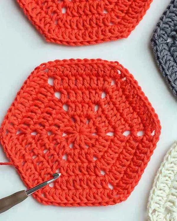 You’ll notice that, unlike a crochet square, you will not be working double crochet clusters for this pattern. There’s also the solid hexagon granny if you prefer a firmer-looking crochet motif. Joined together, you’ll get an interesting honeycomb-like texture.