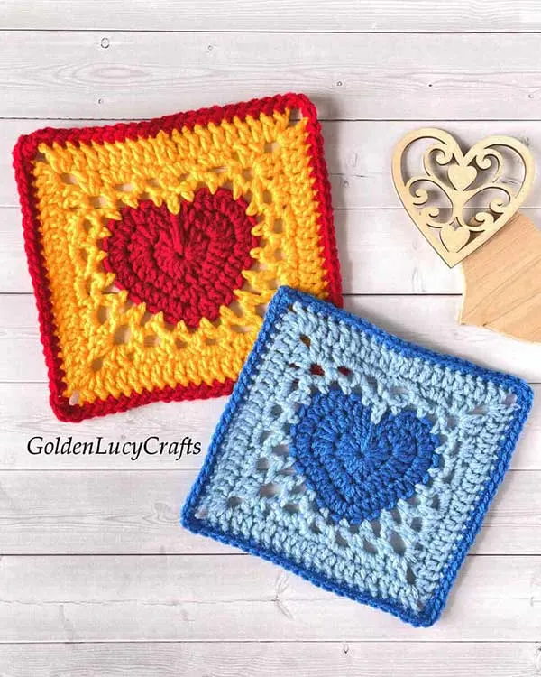 Since the granny square heart is not a traditional square motif, there’s no fixed way to crochet them. Check out how the crochet designers put their spin on the squares using different basic stitches.