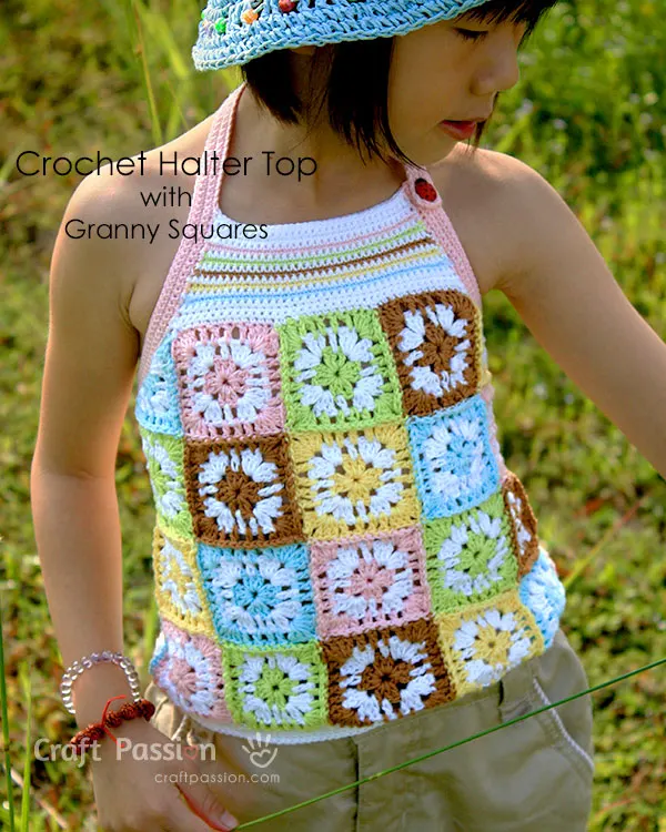 Crochet tops have risen in popularity over the years. This halter top pattern is written with a kid’s size in mind, but you may add a few more rounds or crochet larger squares to make it fit an adult.
