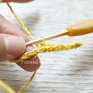 Follow the crochet pattern to make the first 3 rows of single crochet with Yellow color yarn.
