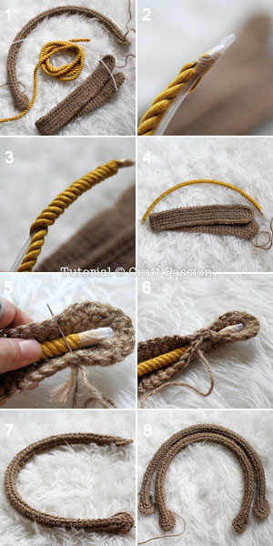 - Crochet a pair of handles with the pattern above.