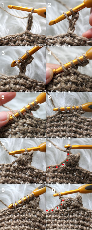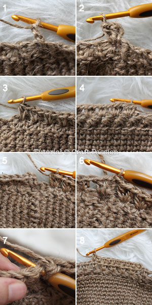 Follow by a row of single crochet on the right side. It is both loops single crochet (picture 7).