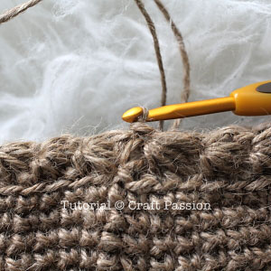 If you can’t take the smell and jute’s roughness, please substitute it with another similar material. Raffia yarn is an excellent replacement next to jute twine to crochet this tote bag, and you may crochet it with a 3mm or a 3.5mm hook. However, by changing the yarn to raffia and smaller hook size, the crochet tote bag will be slightly smaller. If you want to maintain it to the same size, you may crochet with 2-strand raffia yarn and a 5mm hook.