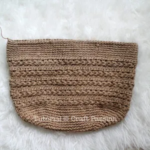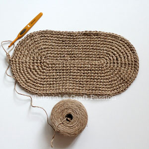 This is how the oblong base of the jute twine tote looks like after complete 11 rounds.