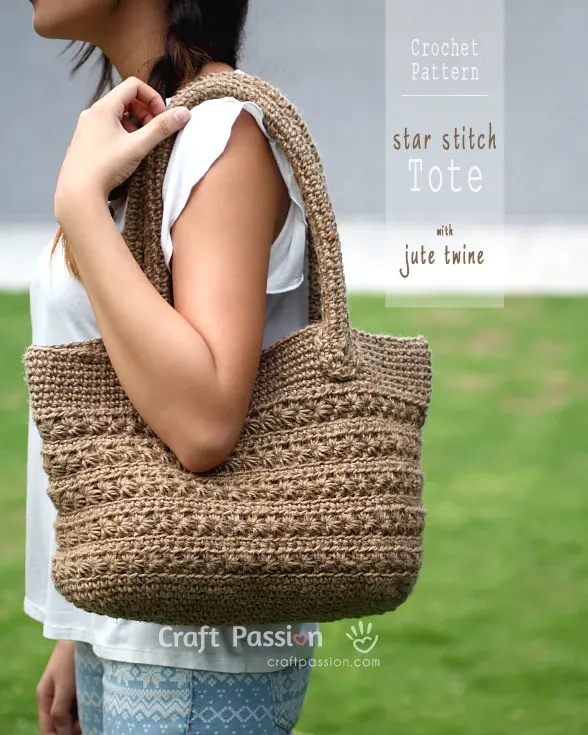 Get the full article at https://www.craftpassion.com/crochet-star-stitch-tote/