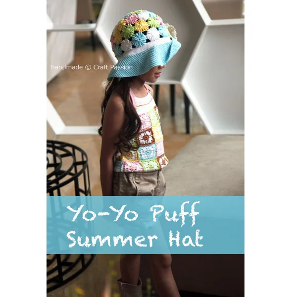 Learn how to make a yo-yo puff (or yoyo puff) with a written & chart crochet pattern. Make a few yo-yo puffs and turn them into beautiful projects. For instance, this beautiful colorful crochet summer hat for girls.